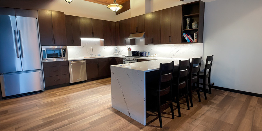 Jerry used the Laika Mounting Channel Kit for his project, an elegant, professional finish without hot spots in the countertop's reflections.